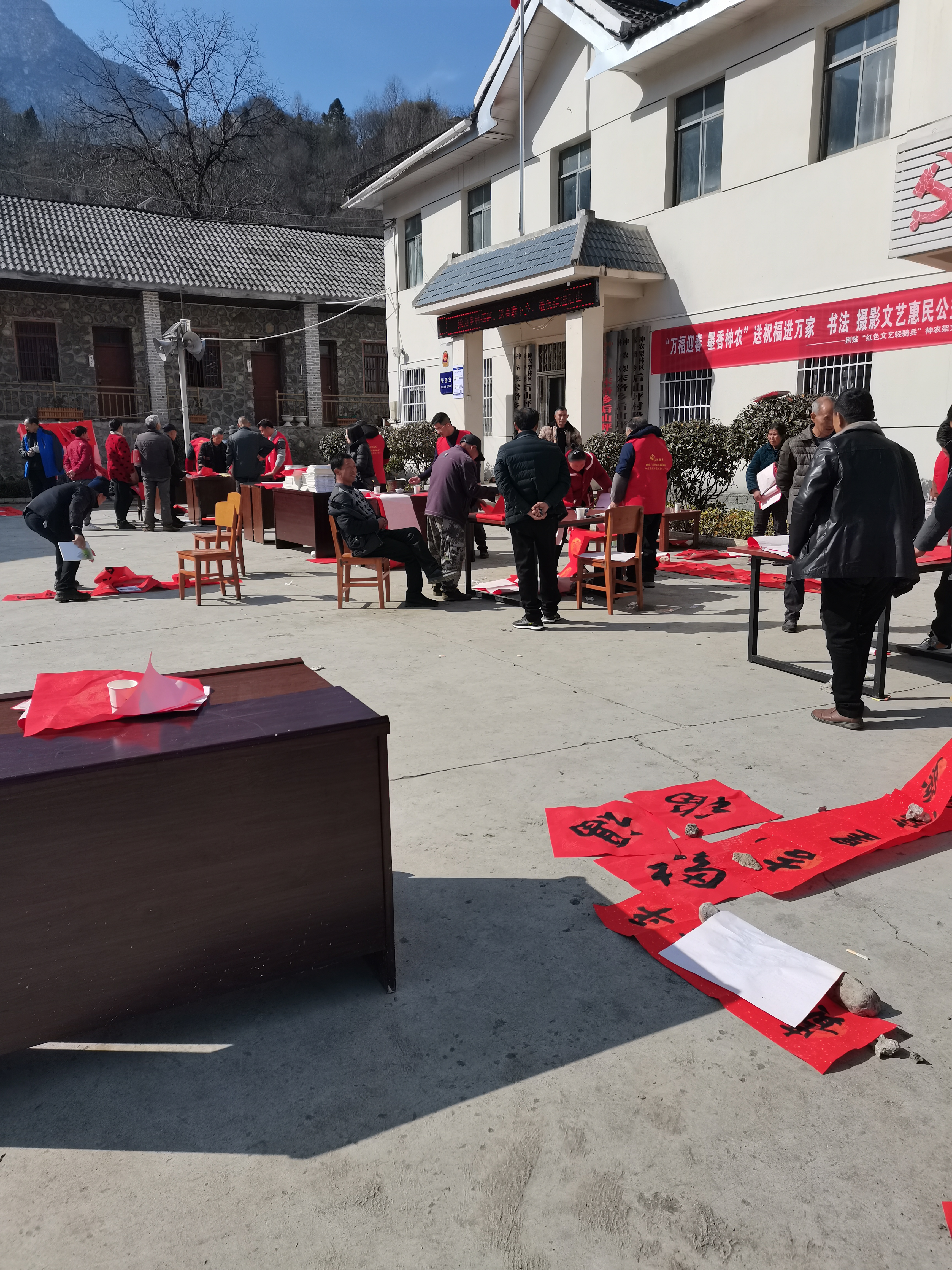 1月15日—31日,開(kāi)展“我在神農(nóng)架過(guò)大年”送春聯(lián)下鄉(xiāng)-送祝福進(jìn)萬(wàn)家書(shū)法惠民活動(dòng)8場(chǎng),分別在后山坪村、長(zhǎng)青藥王谷、陽(yáng)日村、陽(yáng)日社區(qū)、雙建村等地方給村民送去春聯(lián)、送去福字4500余幅。
