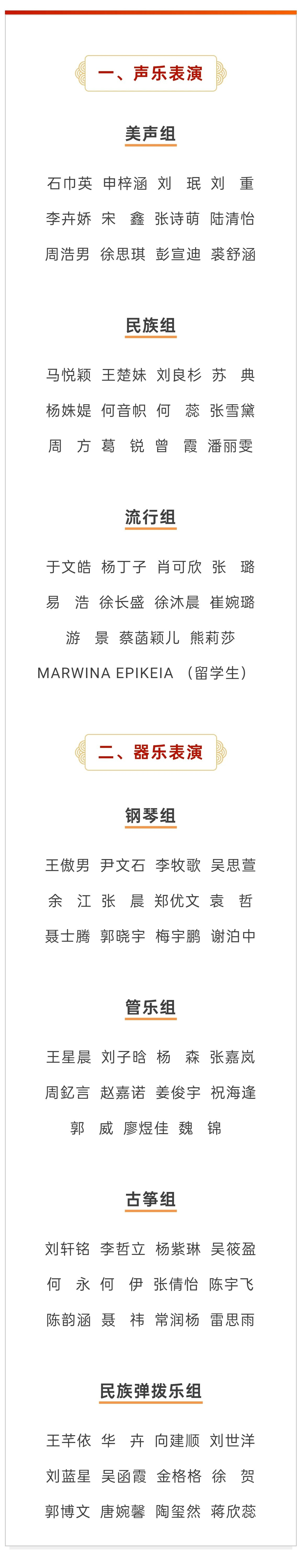 湖北音樂金編鐘大賽聲樂表演(美聲、民族、流行)、器樂表演(鋼琴、管樂、古箏、民族彈撥樂)復(fù)賽工作已完成,現(xiàn)場決賽擬于6月中下旬舉行,時間、地點另行通知?,F(xiàn)將表演類入圍決賽選手名單公布如下。