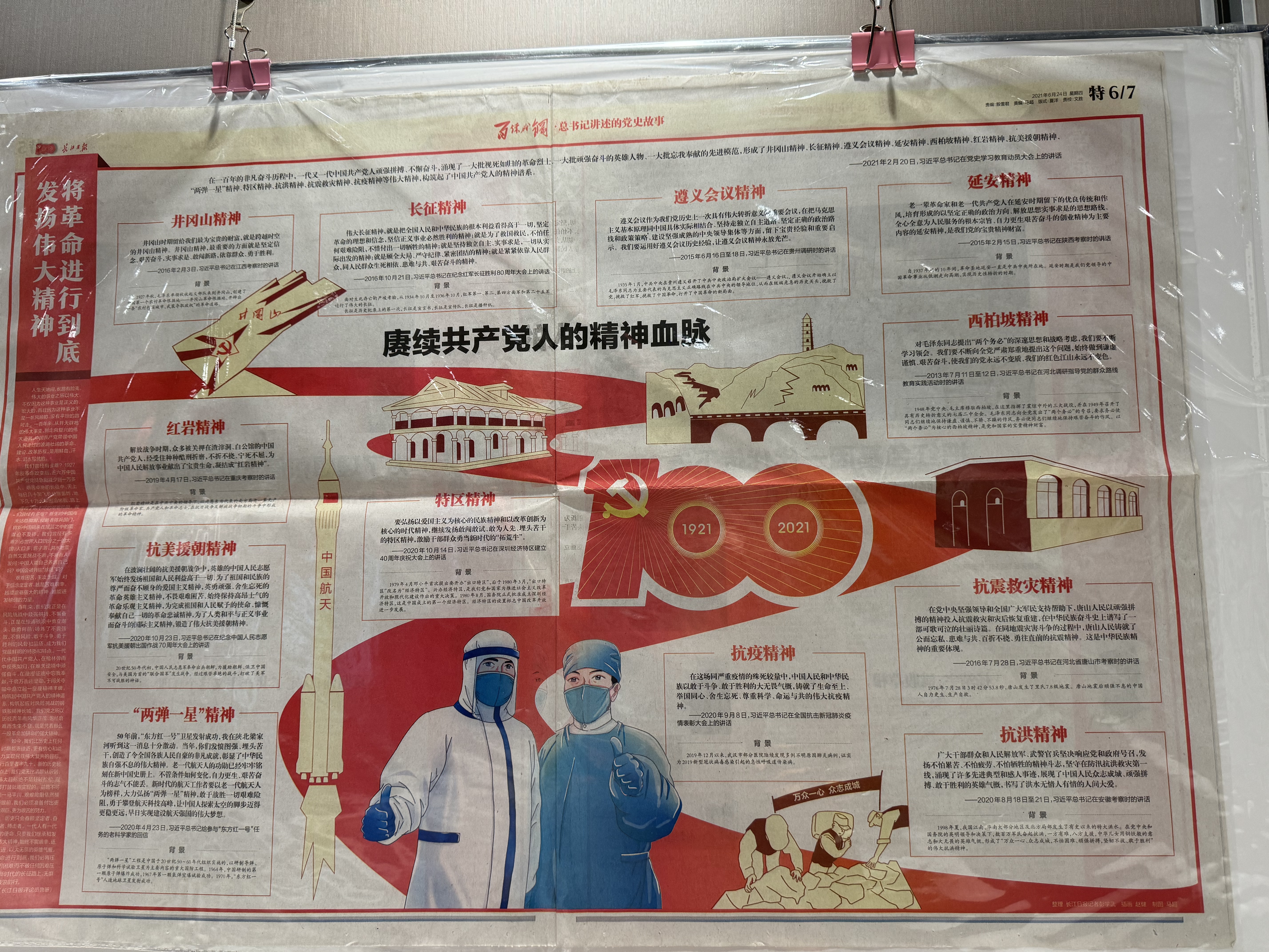 本次展覽共展出珍貴郵品、報刊280余件,展覽分為兩部分,第一部分展出《民族大團結(jié)》《“向戰(zhàn)斗在一線的英雄們致敬”郵資明信片的版式研究》等郵集。第二部分展出2021年中宣部推出的第一批中國共產(chǎn)黨人的精神譜系相關(guān)內(nèi)容。展覽以歷史發(fā)展為線索,通過不同時期的報刊系統(tǒng)介紹各歷史時期的中國共產(chǎn)黨人精神譜系。回顧中國共產(chǎn)黨104年走過的歷程,第一批46種精神譜系中,每種都有其要點圖文資料,其中對大別山精神、抗洪精神、抗疫精神這三大精神做了重點布展,展出了部分專題報道,其中有1998年經(jīng)濟日報、人民政協(xié)日報關(guān)于抗洪精神的專題報道,2021年經(jīng)濟日報關(guān)于大別山精神的特別報道等展品,從中不難發(fā)現(xiàn),“三大精神”是湖北人民用熱血和汗水鑄就的精神豐碑,這些載體不僅是收藏品,更是記錄三大精神的生動教材。