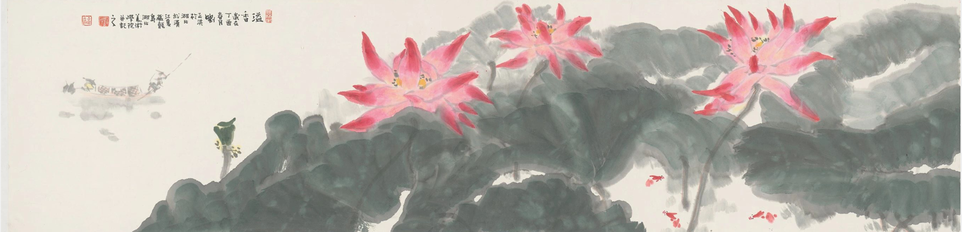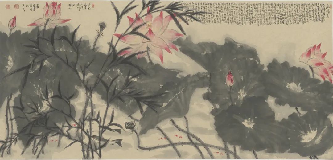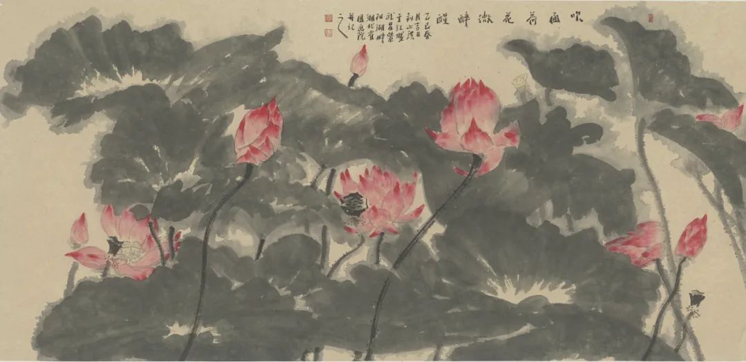 劉正洪 國畫 吹面荷花微醉醒 68cm×136cm 2025年