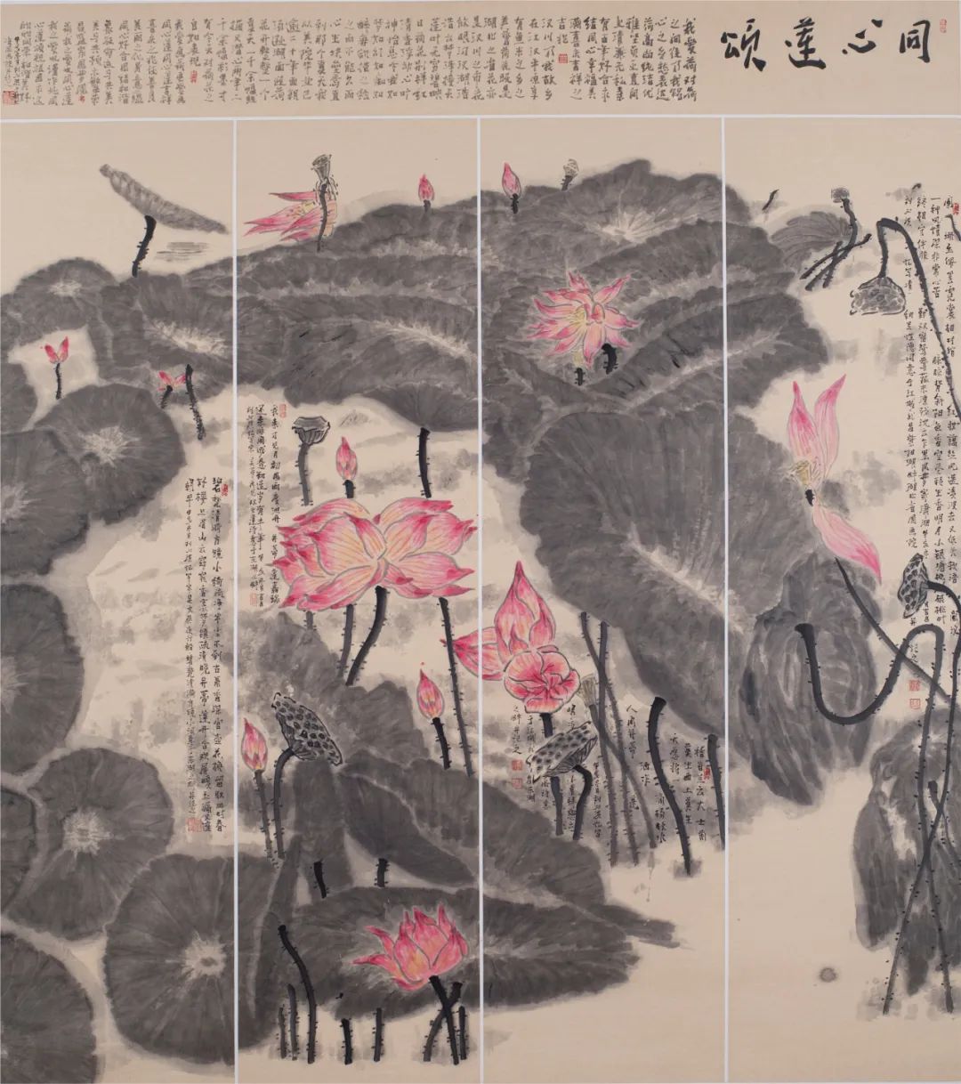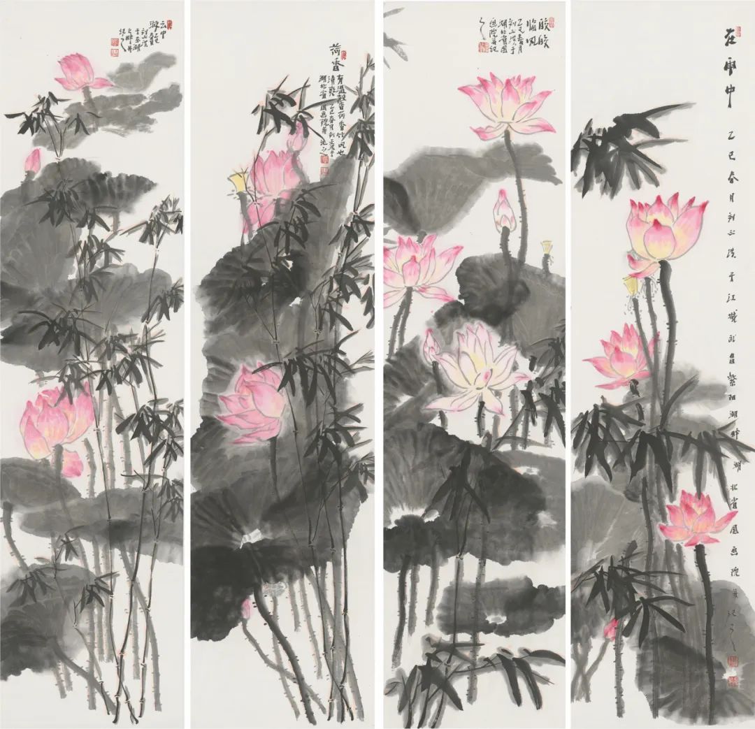 劉正洪 國畫 遇見同心蓮 235cm×53cm×4 2025年