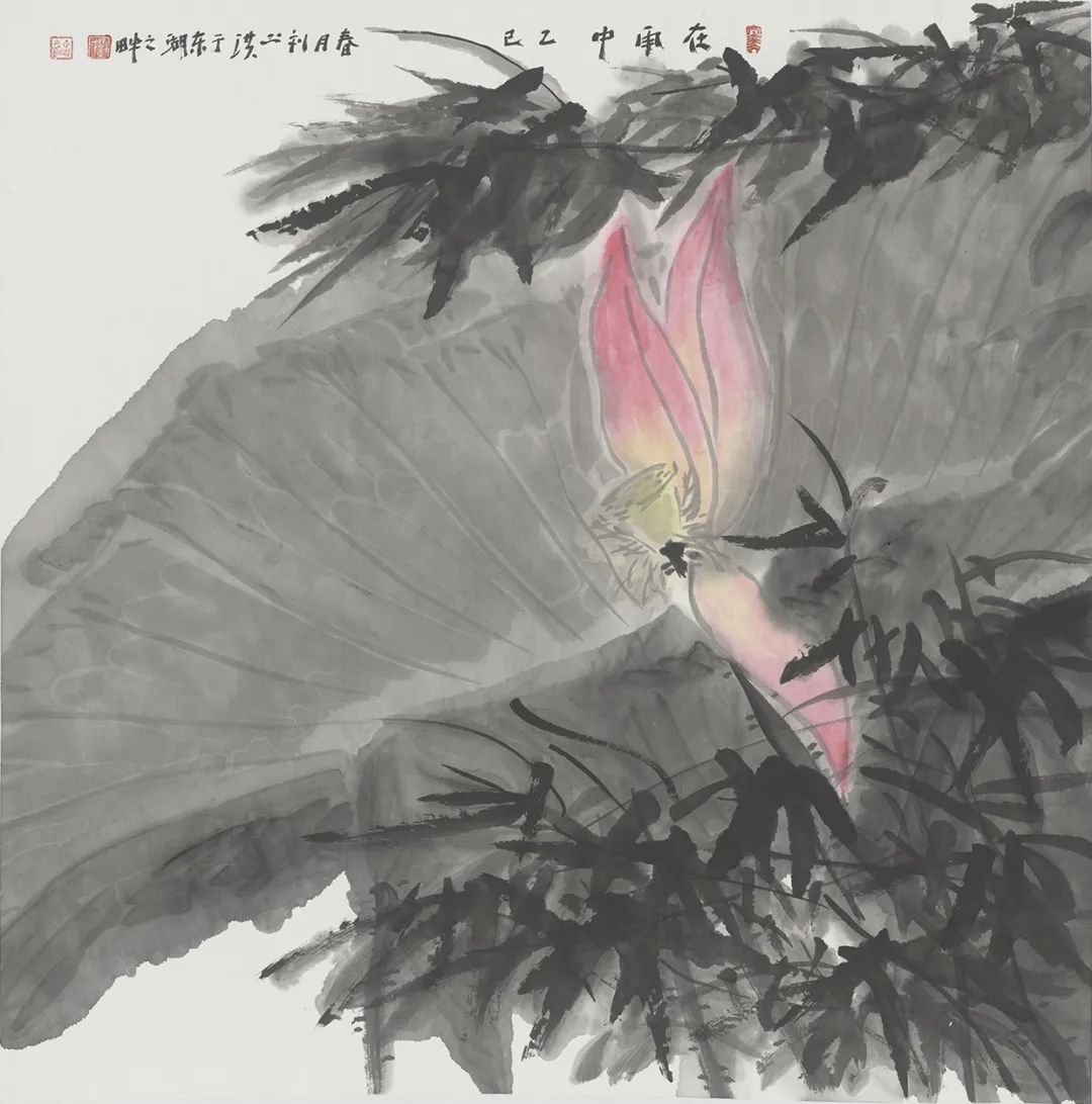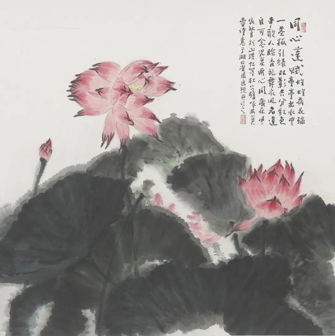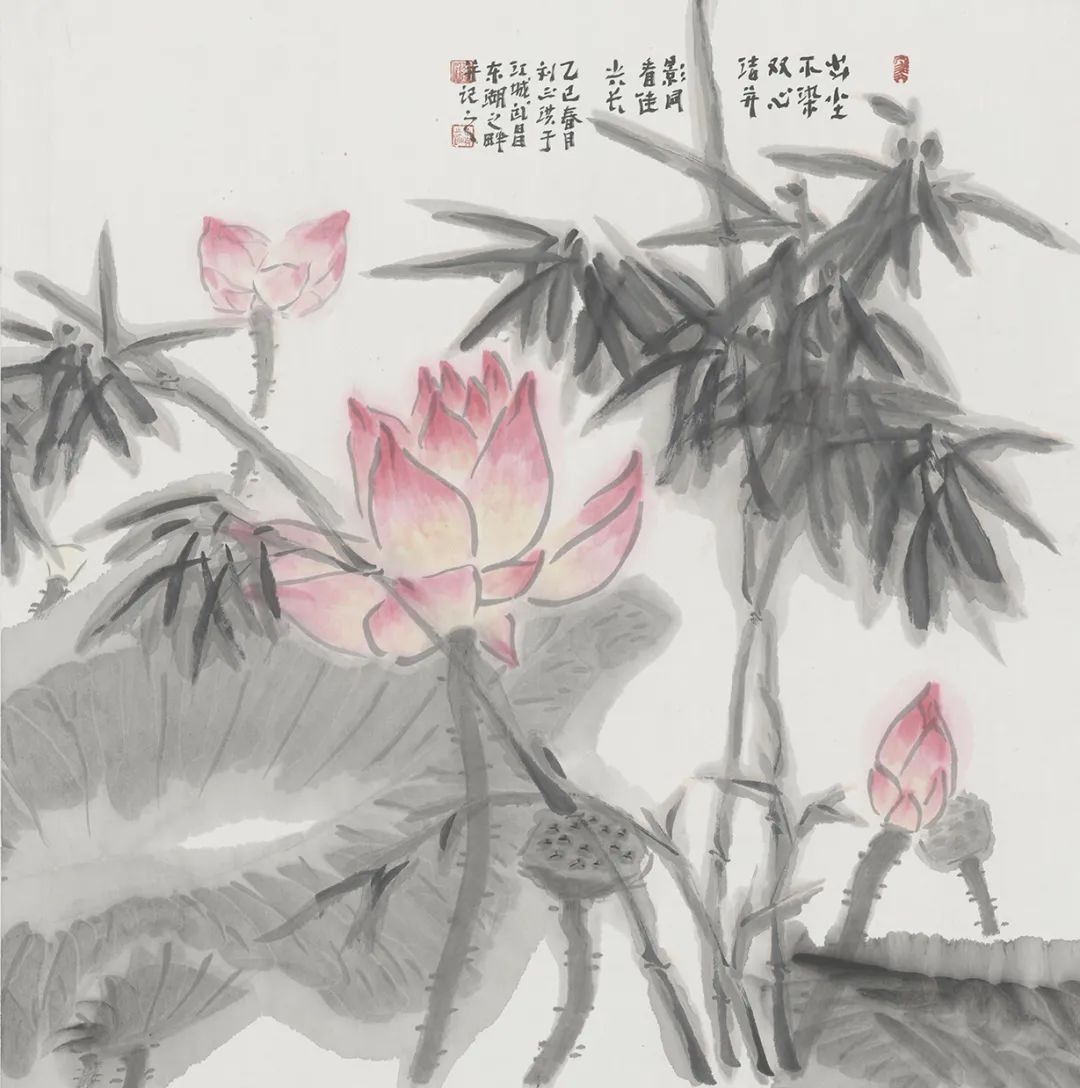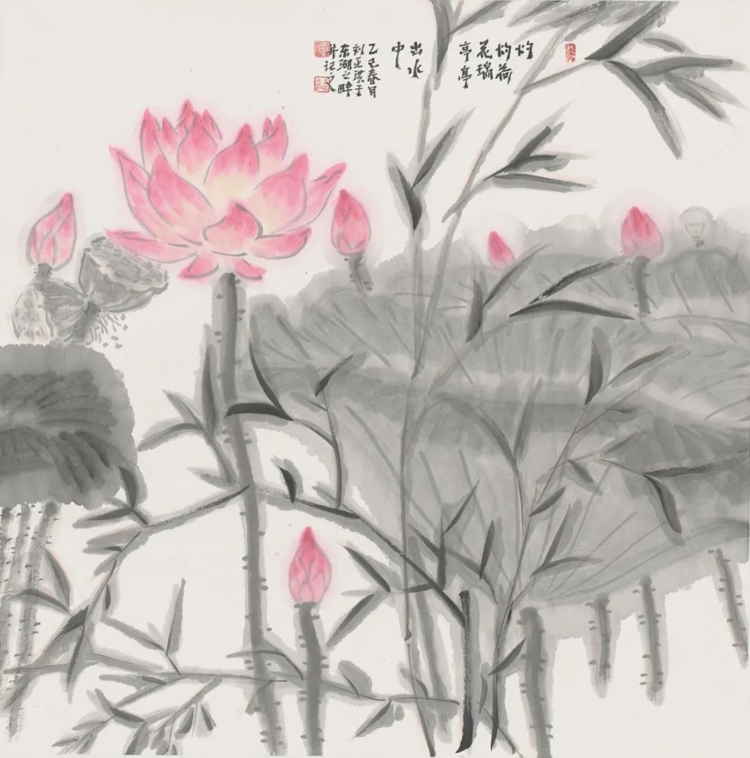 劉正洪 國畫 出塵不染雙心潔 68cm×68cm 2025年
