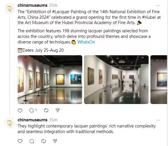 2024年7月 中國日報(bào)海外媒體賬號“chinamuseums”在臉書等平臺報(bào)道十四屆全國美展漆畫展