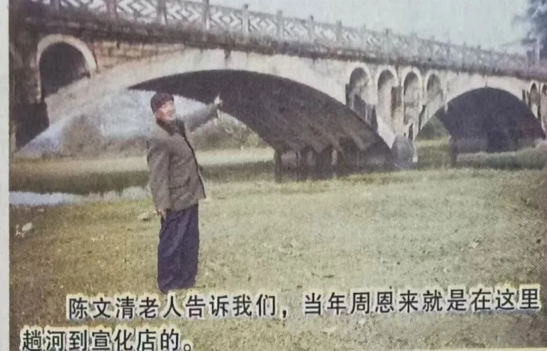 在十棵松村十棵松河老橋,長軒嶺街道文化站站長彭鵬為大家介紹1946年5月,周恩來副主席赴宣化店談判蹚水過河的歷史往事。