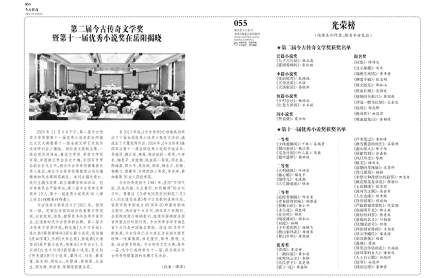(3)主辦、聯(lián)合主辦了系列文學(xué)賽事:舉辦第二屆(2022-2024)今古傳奇文學(xué)獎(jiǎng)?lì)C獎(jiǎng)典禮,征文評(píng)選活動(dòng)歷時(shí)2年,獲獎(jiǎng)作品共計(jì)19部;主辦了光芒少年文學(xué)獎(jiǎng)評(píng)比、中華家風(fēng)中小學(xué)生征文;聯(lián)合主辦“昆山文化”征文及相關(guān)活動(dòng),加強(qiáng)刊物與地方文化的互動(dòng)。與湖北省圖書(shū)館合作第21屆“童之趣”杯征文大賽,參與征文評(píng)審工作,并為優(yōu)秀作品提供刊發(fā)平臺(tái)。