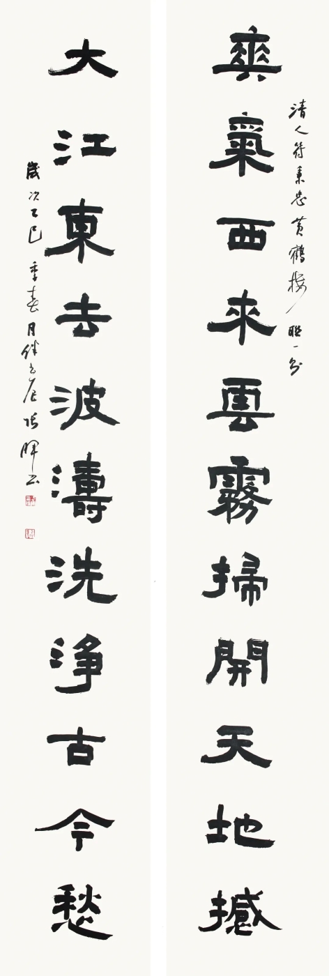 180cm×35cm×2? 對聯(lián)黃鶴西樓月 長江萬里情