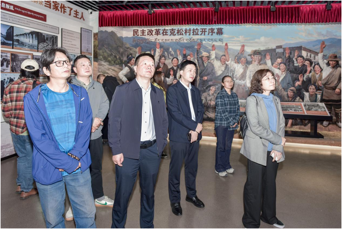 26日下午,湖北省文聯(lián)代表團將“流動課堂”開到西藏民主改革第一村——乃東區(qū)克松社區(qū)陳列館。在海拔3600米的陳列館里,一張張老照片、一件件舊農(nóng)具、一段段影像資料,成為最生動的“教材”。講解員把1959年民主改革的歷史脈絡(luò)娓娓道來:從“朗生”到“主人”,從“鐐銬”到“笑臉”,從“帳篷”到“新村”,“舊社會的一把鎖、一把鐐,和新生活的一盞燈、一條路,對比太震撼!”藝術(shù)家們邊看邊記,不時舉起相機,把“歷史瞬間”定格為創(chuàng)作素材。
