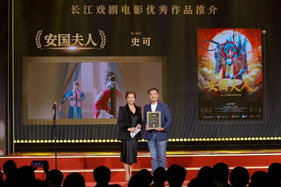 推介嘉賓在介紹優(yōu)秀作品的同時,細(xì)數(shù)自己與湖北、與江夏、與京劇及戲曲的淵源,全場掌聲雷動。優(yōu)秀作品主創(chuàng)人員紛紛登臺,講述影片的精彩片段與創(chuàng)作故事,讓觀眾深入了解每部作品背后的匠心。這些作品涵蓋京劇、昆曲、粵劇、楚劇、漢劇等多個劇種,從不同角度展現(xiàn)了戲劇電影在內(nèi)容與形式上的多元探索,讓觀眾看到了這一領(lǐng)域的豐富性與創(chuàng)新性。