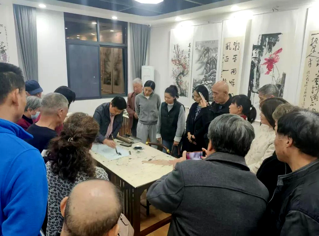 課堂上,吳永斌老師從筆墨紙硯的選擇、執(zhí)筆姿勢到楷書四大家風格特點,系統(tǒng)講解了書法學習的完整路徑,讓學員們快速搭建起書法知識框架。在現(xiàn)場示范環(huán)節(jié)中,吳老師揮毫潑墨、筆走龍蛇,學員們緊隨其后認真臨摹,整個實踐站墨香四溢、學習氛圍濃厚。在最受歡迎的作品交流環(huán)節(jié),學員們紛紛拿出平日習作請教,吳老師逐一點評、精準指導,針對性指出問題并給出改進建議?!霸瓉砦业臋M畫起筆角度有問題,經(jīng)老師點撥終于明白了!”社區(qū)老年學校書畫班學員謝師傅舉著批改后的作品興奮不已。
