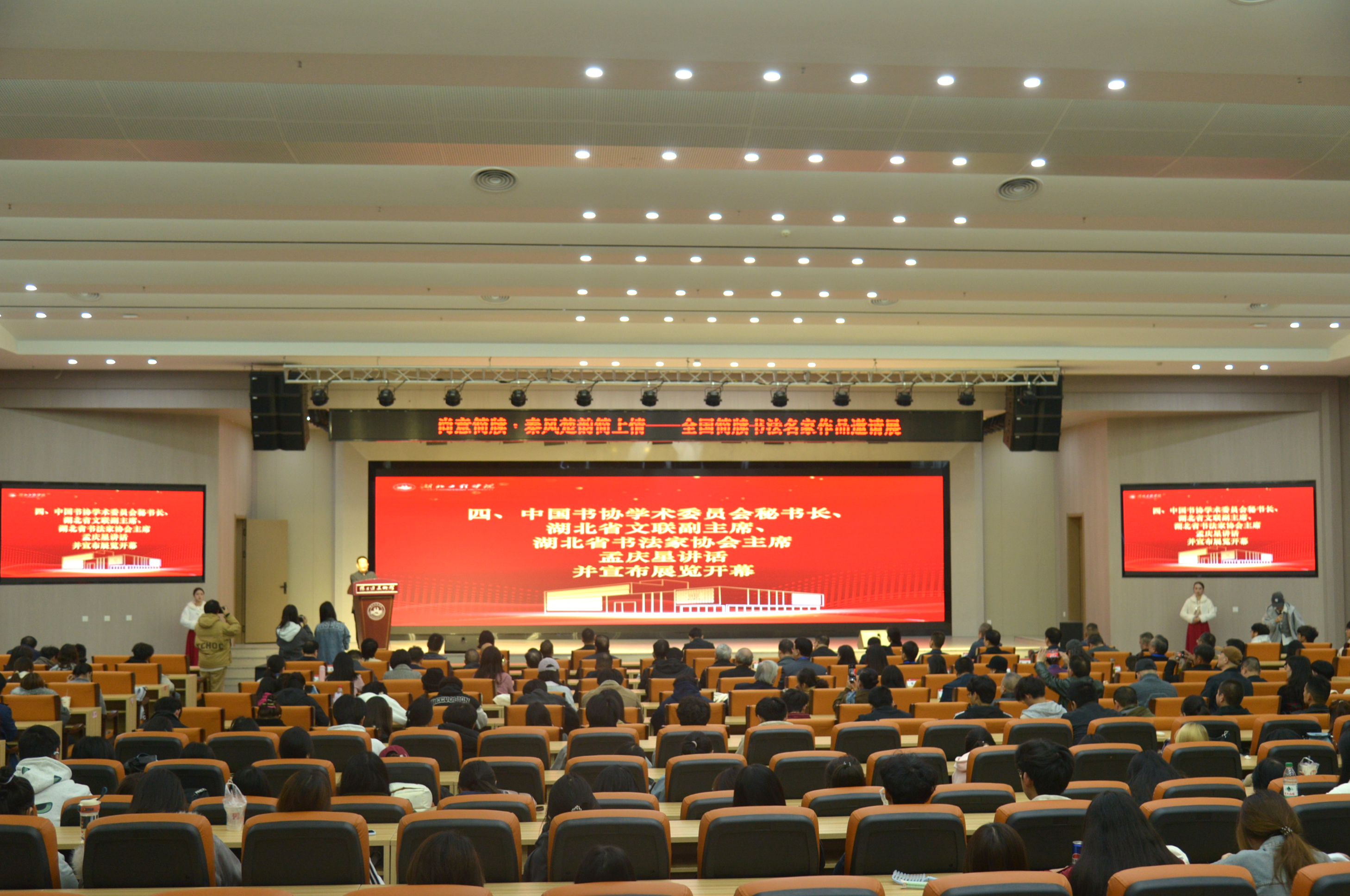 11月8日,“尚意簡(jiǎn)牘?秦風(fēng)楚韻簡(jiǎn)上情”——全國(guó)簡(jiǎn)牘書(shū)法名家作品邀請(qǐng)展活動(dòng)在湖北工程學(xué)院美術(shù)與設(shè)計(jì)學(xué)院舉行。此次展覽由中共孝感市委宣傳部、湖北省書(shū)法家協(xié)會(huì)、湖北省書(shū)法院、湖北工程學(xué)院、孝感市文聯(lián)五家單位聯(lián)合主辦,湖北省書(shū)法院楚簡(jiǎn)書(shū)法研究中心、湖北工程 學(xué)院黨委宣傳部、湖北工程學(xué)院美術(shù)與設(shè)計(jì)學(xué)院承辦,孝感市書(shū)法家協(xié)會(huì)、湯文選美術(shù)館、云夢(mèng)縣博物館、云夢(mèng)縣文化館協(xié)辦。該活動(dòng)積極響應(yīng)了習(xí)近平總書(shū)記考察孝感市云夢(mèng)縣博物館時(shí)提出的加強(qiáng)文物保護(hù)、弘揚(yáng)中華優(yōu)秀傳統(tǒng)文化的重要指示精神,同時(shí)也是挖掘云夢(mèng)簡(jiǎn)牘文化價(jià)值、推動(dòng)文化創(chuàng)新發(fā)展的生動(dòng)實(shí)踐。