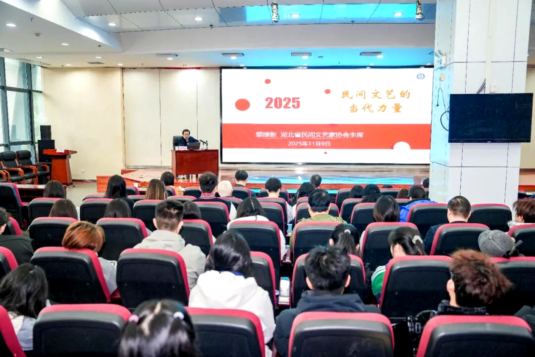 市文聯(lián)黨組成員、專職副主席劉遠芳出席,市民協(xié)主席、湖北師范大學音樂舞蹈學院副院長李海萌主持,近百名高校師生及民間文藝愛好者聆聽了本次講座。
