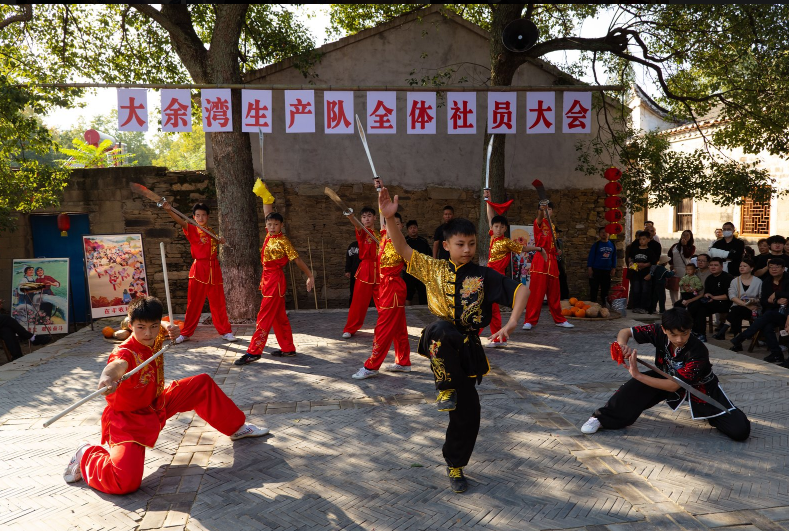 調研當日,鄉(xiāng)村場院與街巷間,鑼鼓喧天,喝彩不斷。大余灣對民俗非遺的保護,絕非束之高閣,而是將其融入日常,實現了有效的“活化”傳承。泥塑藝術家現場獻藝,將指尖泥土化為栩栩佳作;皮影戲幕布后的光影變幻,木偶戲藝人的巧手操控,引得孩子們陣陣驚呼;驚險刺激的非遺斗雞表演和剛柔并濟的木蘭武術展示,展現了力量與技巧之美;韻味十足的楚劇、妙趣橫生的湖北大鼓、神奇的川劇變臉,以及富有節(jié)日喜慶氛圍的采蓮船等民俗表演,輪番上場,為參觀者奉上了一場場傳統(tǒng)文化的盛宴。