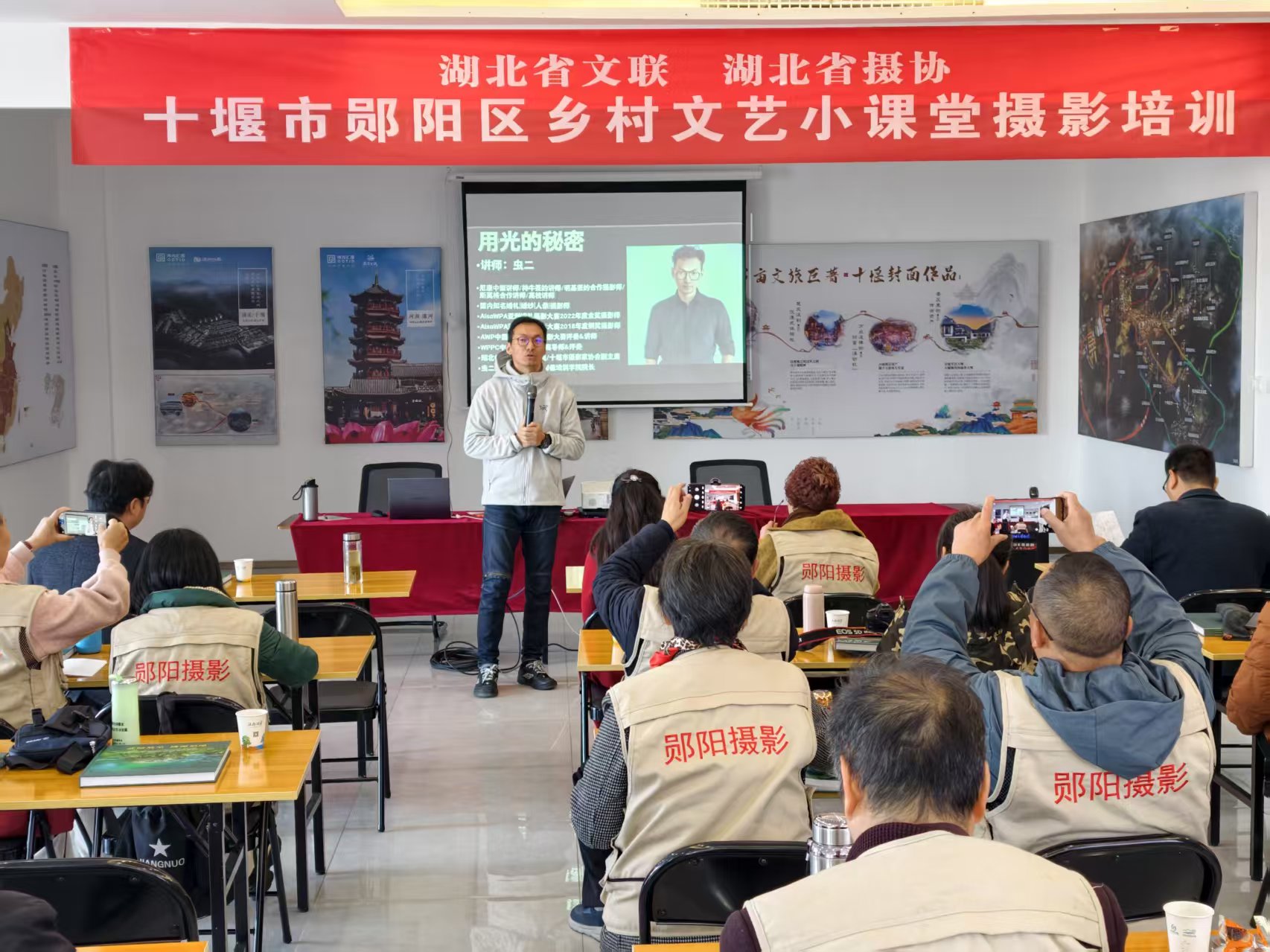 為深入貫徹落實(shí)習(xí)近平文化思想和宣講黨的二十屆四中全會(huì)精神,推動(dòng)優(yōu)質(zhì)文藝資源直達(dá)基層,讓基層文藝工作者在本地也能享受優(yōu)質(zhì)培訓(xùn)課程資源。2025年11月28日至29日,湖北省文聯(lián)、湖北省攝協(xié)、十堰市文聯(lián)、鄖陽(yáng)區(qū)文聯(lián)聯(lián)合在文藝聚居區(qū)漢水九歌街區(qū)舉辦“鄉(xiāng)村文藝小課堂”攝影培訓(xùn)活動(dòng)。