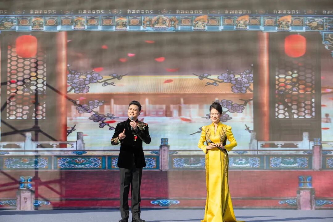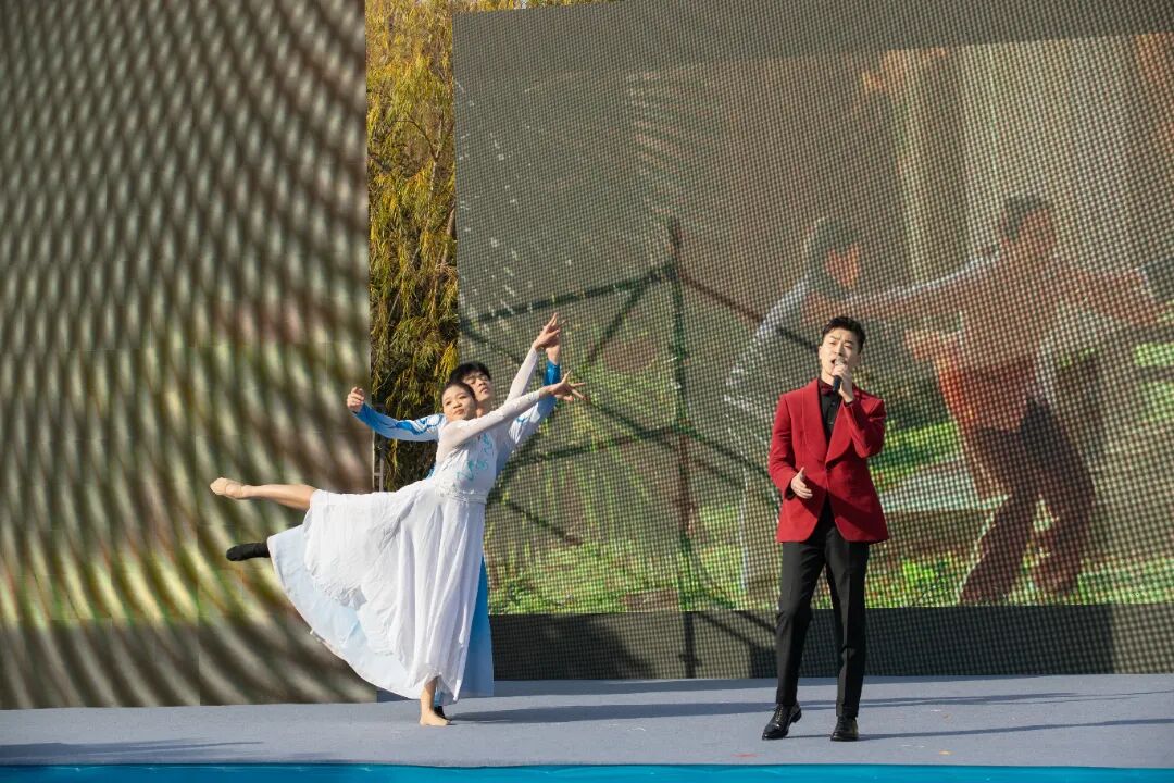 歌曲《我們的祖國歌甜花香》,演唱:萬莉、余景明,伴舞:江漢藝術職業(yè)學院