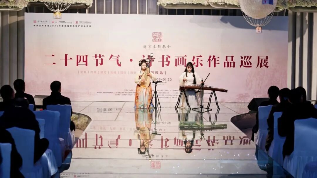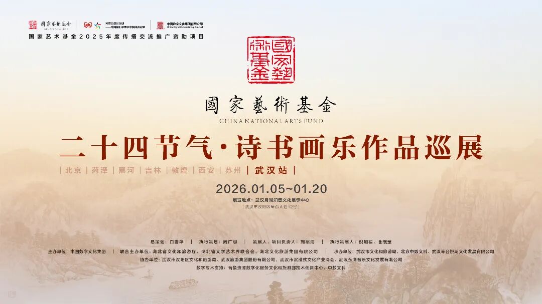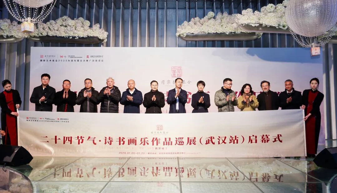2026年1月12日上午10:00,國家藝術基金管理中心指導,中國數字文化集團主辦,湖北省文化和旅游廳、湖北省文學藝術界聯合會、湖北文化旅游集團有限公司聯合主辦,武漢市文化和旅游局、北京中數文科、武漢琴臺悅湖文化發(fā)展有限公司共同承辦的國家藝術基金傳播交流推廣資助項目——“二十四節(jié)氣·詩書畫樂作品巡展”湖北(武漢站)在武漢琴臺月湖知音文化展示中心隆重啟幕。