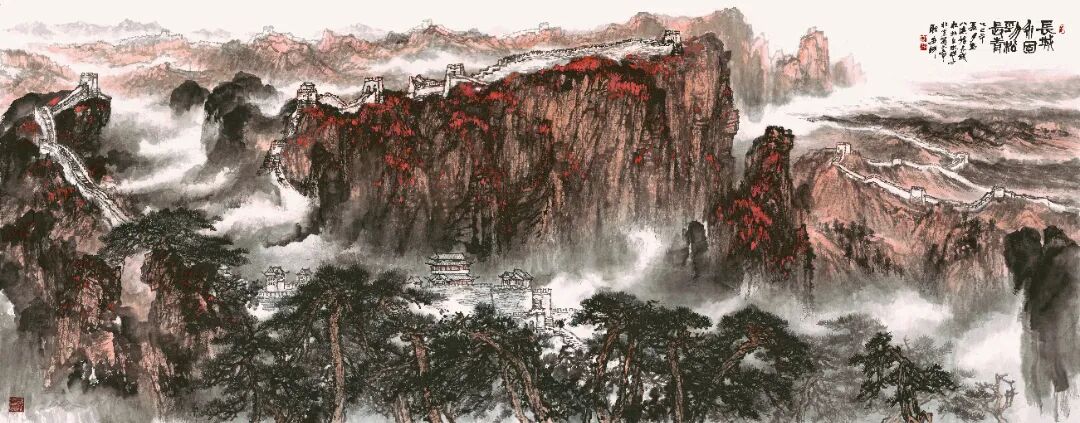 耿安輝《長城永固勁松長青》144×367cm 2025年