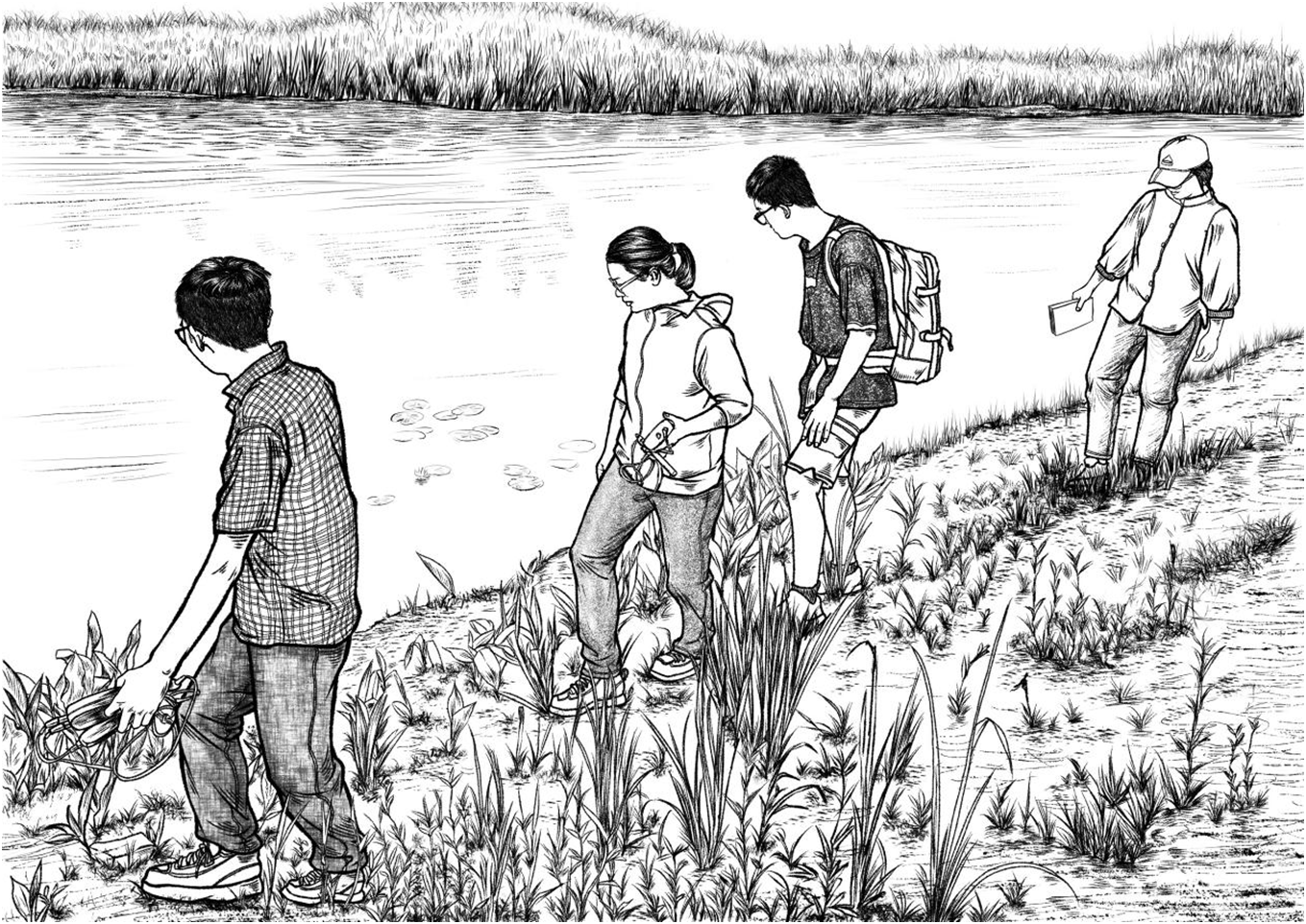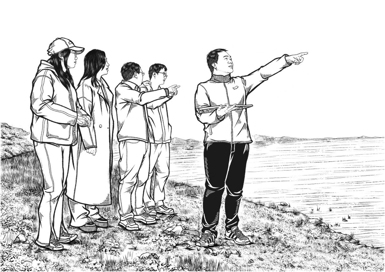 《石首生態(tài)修復(fù)記》傳承了老一輩連環(huán)畫畫家嚴謹精準的創(chuàng)作傳統(tǒng),又突破傳統(tǒng)表達形式,采用數(shù)字繪畫的現(xiàn)代手法緊跟時代潮流。繪本中,不僅生態(tài)修復(fù)的各類場景精準刻畫,師生們野外工作的真實狀態(tài)也得以生動還原。創(chuàng)作過程中,團隊堅持邊創(chuàng)作邊廣泛征求各方意見,反復(fù)打磨完善。參與創(chuàng)作的邱越、許俊揚等同學(xué)表示,在描繪農(nóng)田“鴨蛙稻”生態(tài)種養(yǎng)新模式等畫面內(nèi)容時,陳華文老師的嚴苛要求讓他們深刻體會到藝術(shù)創(chuàng)作的嚴謹性,更感受到科研工作者投身生態(tài)修復(fù)的艱辛付出。