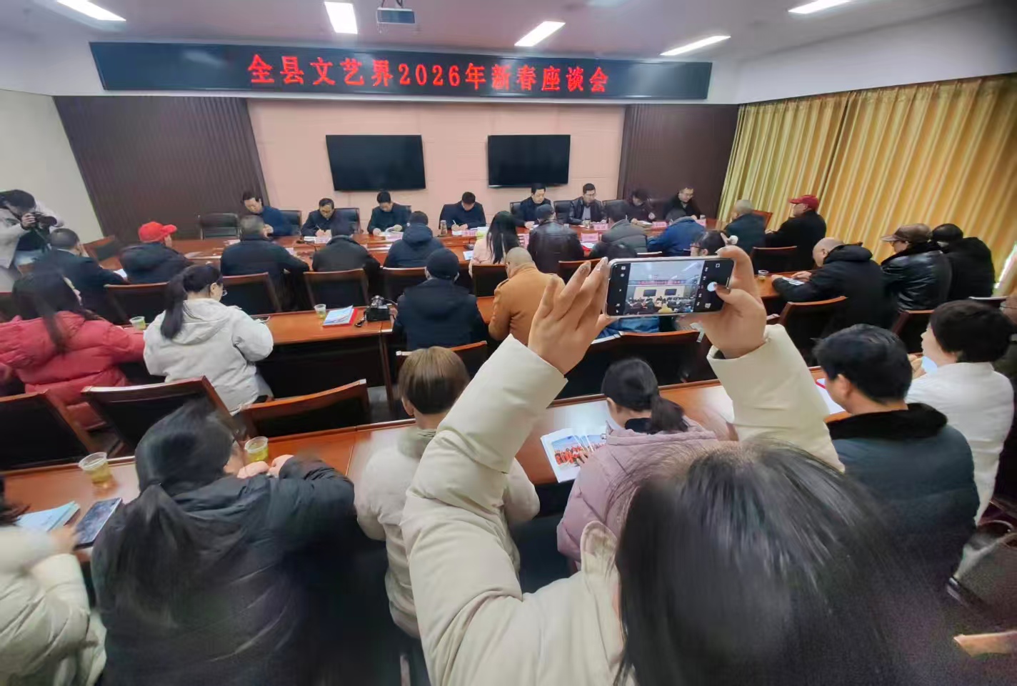 2月11日,一場以“瞰見低空新圖景”為主題的攝影展在秦巴文化藝術(shù)中心驚艷開場,拉開了竹山縣文藝界2026年新春座談的溫暖序幕。會議慰問了全縣文化人士、文明實(shí)踐志愿者和網(wǎng)絡(luò)工作者代表,通報表揚(yáng)了2025年的先進(jìn)文藝工作者和優(yōu)秀文藝志愿者,對全國跳傘錦標(biāo)賽攝影作品征集及低空經(jīng)濟(jì)主題攝影作品征集、竹山綠松石文化作品征集、新桃花源記征文等文藝賽事活動進(jìn)行了頒獎,全縣文藝界代表40余人參加會議,縣委常委、宣傳部長李金柱出席并講話。