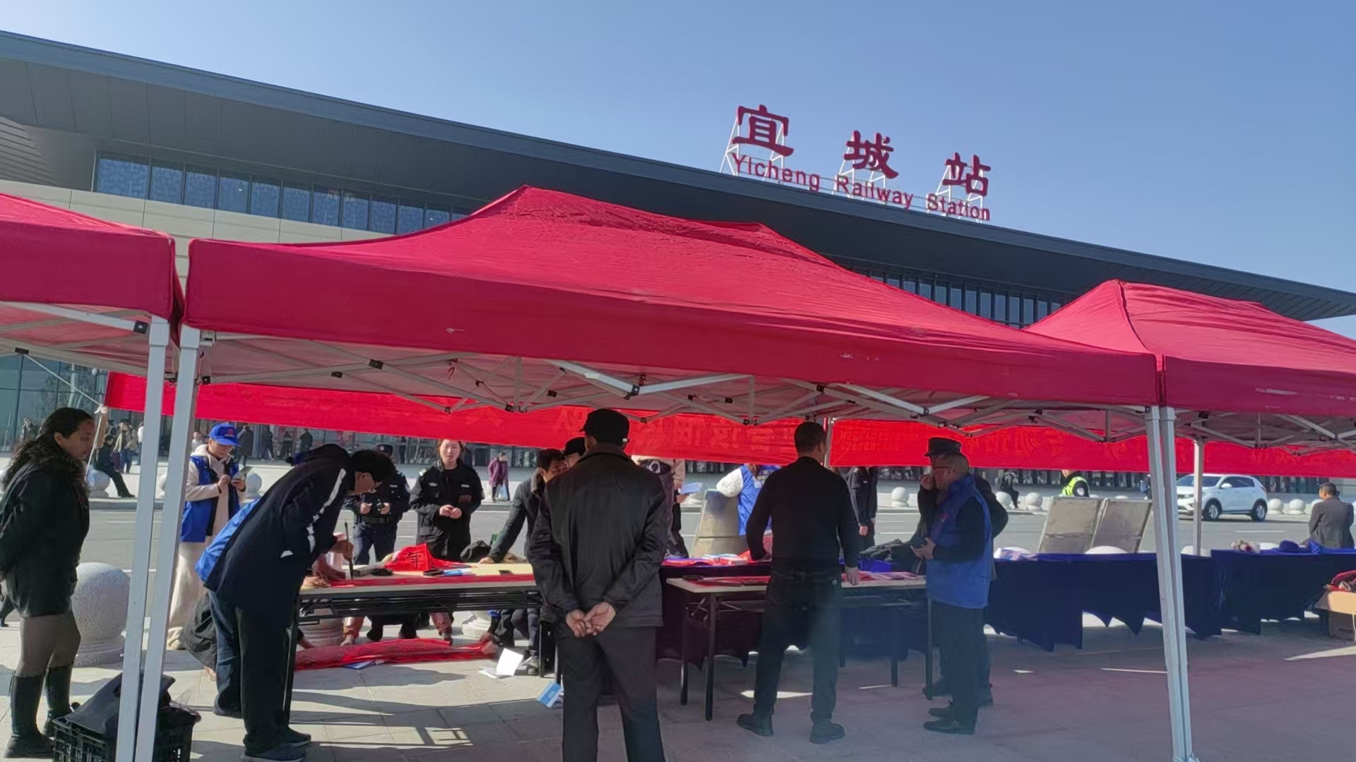 2月15 日,宜城市文聯(lián)聯(lián)合人社部門在宜城高鐵站開展“返鄉(xiāng)有暖 服務(wù)隨行”活動。宜城市文聯(lián)組織8 位書法家協(xié)會老師現(xiàn)場揮毫潑墨,為往來旅客送上滿載祝福的春聯(lián)。